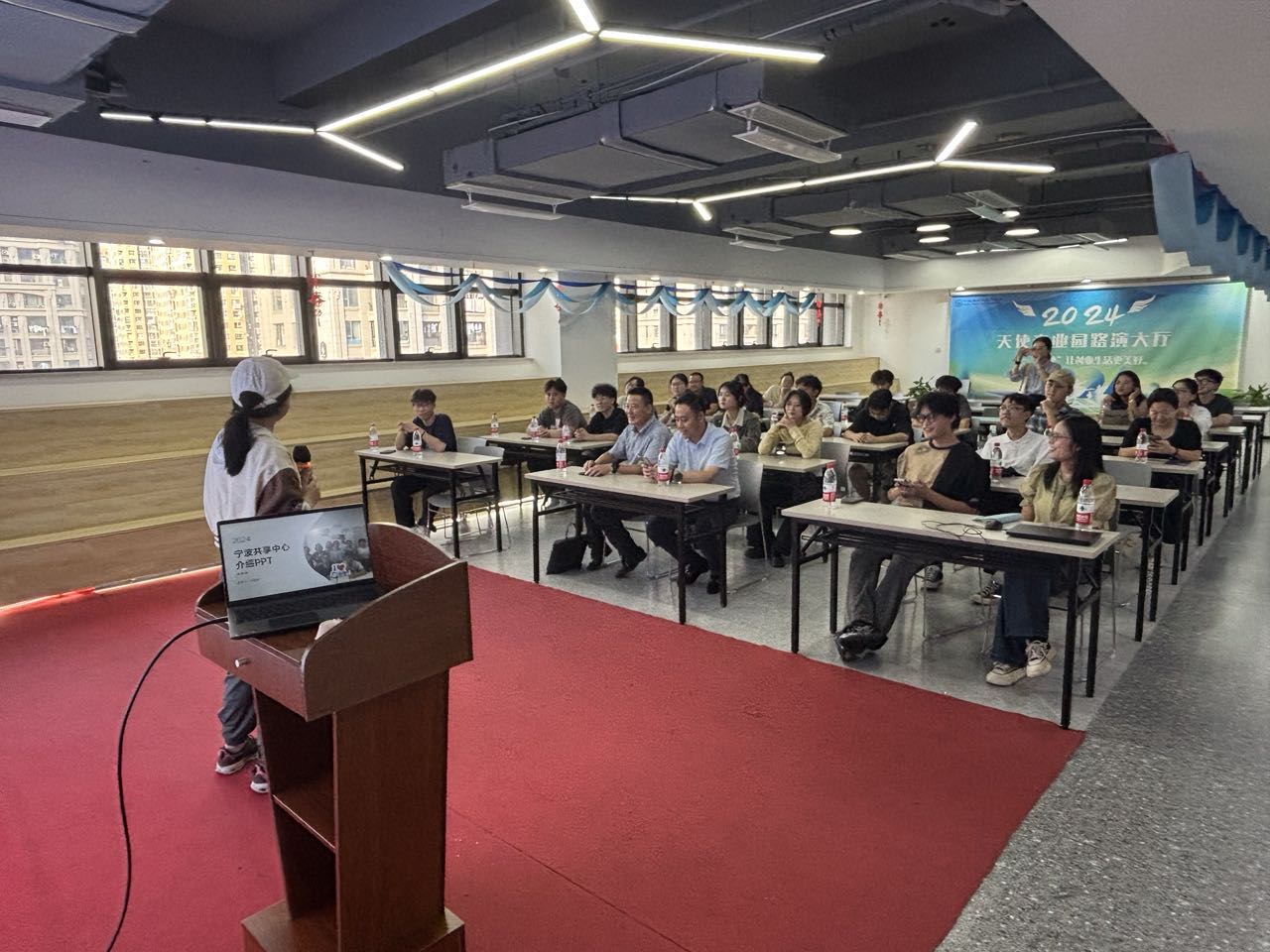 活动伊始,镇海大学生创业园管理负责人常亮总经理详细介绍了创业园的基本情况、入园政策、场租补贴等支持措施,展示了园区在为大学生创业者提供场地保障、创业培训和指导等方面的综合服务,营造了良好的创新创业生态环境。