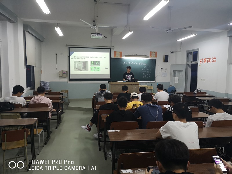 班会由各班班长组织讲解,通过图文并茂的幻灯片,让同学们了解实验室安全事故发生的原因及注意事项。另外,组织学生完成“实验室安全知识测试”,加深学生对安全知识的印象。